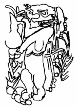 Note the griffin hero's flowing mane and lion face. He is victor killing the black conehead who is smaller, with his figure 8 shield iconic to Knossos. Is the black a mercenary, a Sirian? Negro bull leapers, not dwarf though, feature on Minoan frescoes. I show Enki as a dwarf black conehead in rock art depicting attacks on EVE in Missouri and Canada in another post but he is no monkey. The losing soldier looks simian suggesting the monkey race in Ramayana fighting with Hanuman.