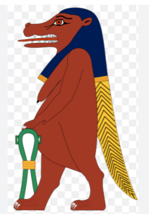 With her croc snout and tail, cat claws and paws, Tawaret looks a lot like the heart gobbler demon Ammit who eats the hearts of those who die unhappy, with hearts heavier than a feather.