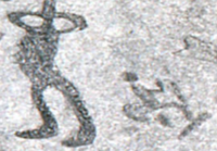 Pleiadeans take hummer form in the Americas. See him shedding his blood for the EVE project in the attack on a black EVE in Picture Cave, Mo., mating with another woman in a petroglyph near Niagara canal, and flying in for attack atop a white EVE mouthing, "On no!" in Panama. The flight path curves then does a sharp left turn symbolizing Shiva did the work in the left hand path of death and destruction. But he did a great job at tribridizing us north and south. He really deserves thanks and a better path now.