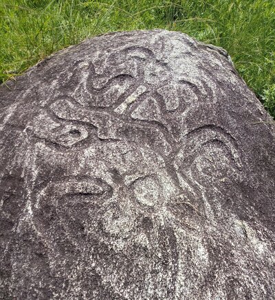 Picture Cave with white EVE identified as aryan, as Orion the bow hunter. So too the raised hand with 5 fingers on EVE near Finger Lakes, NY is an Orion icon. The bull horns forming a bow with 5 arrows pointing inwards towards EVE or Terra, the 5th planet from sun, show that the Pleiadeans from constellation Taurus are attackers. Prof. Michael Fuller, whose wonderful photos of the site I am using, studied the dyes used in Picture Cave. He says very few other white figures are found in rock art. One is in Illinois, but it's not very old. Yet there is a second EVE near another Finger Lakes, in NY not Mo., that is also white, carved in sparkly dolomite. The PhD who did a book on the petroglyphs filled her in with black crayon obscuring the two black holes and blood red oxide stains that match holes of Missouri EVE. EVE is THE heart of this petroglyph site as the big 'nfr' hieroglyph nearby makes clear, but she gets no mention in the govt pamphlet handed out on site now run by 'redskins', their own tribal name, who forbid photos of 'their' sacred space. smh