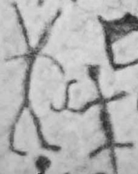 'E' for EVE. Black crayon fills white sparkly dolomite at Eye of Mermaid site in Canada. Calf born from 'Omega' EVE is last step of the cosmogonic dance. This EVE is a black conehead. White blood cells form in the thymus, so this area of EVE is also represented by the white dolomite. A bit NE in Sudbury a huge asteroid hit the Canadian shield, Terra's breast plate, that hooks up with French geology eg Rennes-le-Chateau in Cathar land. She was split apart for her gold.