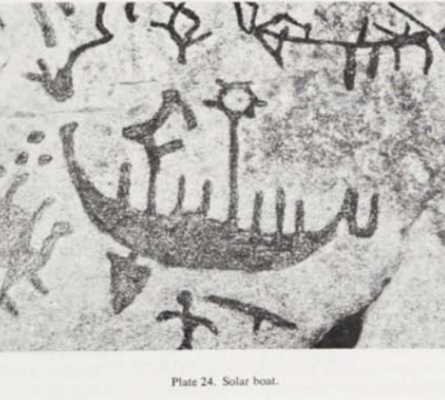 White EVE carved in dolomite is at rock art site making left eye of mermaid on map at start of post. She is left out of govt pamphlet on site. Prof filled her in with black crayon obscuring her red oxide blood stains and the black holes at womb and thymus as in Picture Cave. Note the 5 fingers for Terra, Orion and the horned Mishipeshu between the long legs of Akluhti on EVE's right. At EVE's left foot a black conehead lady births a calf with 'E' by her head. Above her is a solar barque as used to ferry souls of the dead through hell and then back up to heaven at dawn in Egyptian myth.