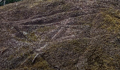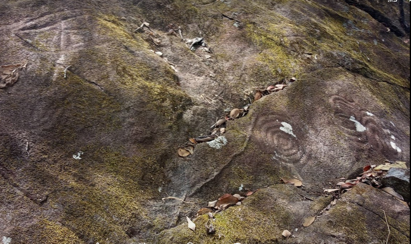 See black right eye, nose of Isis in conehead helmet with brim and hint of veil to left of circles that is map to Machu Picchu of Panama, La India Vieja 'Old Indian Lady' (astronaut Ed Mitchell said 'grama' was code for ET sighting) that lies ahead. Site is enroute from Caldera petroglyphs of Sirian & Pleiadean attack on Terra and EVE.