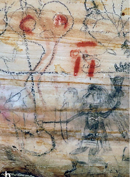 Though a Sirian of a higher mammalian class of whale, or even dog brain, she functions more as a cold blooded reptilian like the Anunnaki troops from Pleiades she leads in battle at the EVE rock art sites as I discuss in other posts. At Picture Cave she is even depicted in purple with her right hand a hissing serpent! Where experts see a turkey shoot, elk hunt, solar calendar, etc I see the same story of a white EVE attacked by Sirian and Pleiadean at both Finger Lakes sites as well as in central Canada and Panama.