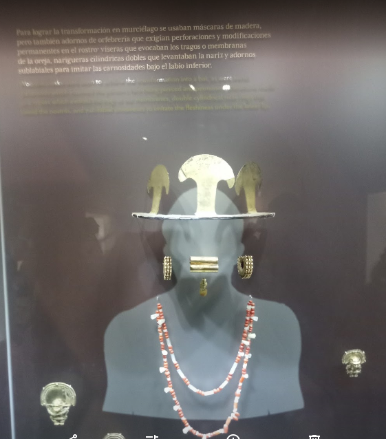 Lip, nose, ear ornaments worn by shaman and rulers to make them look batlike. Adepts could fly at night, staying deep in temples or caves by day.. Grey form looks reptilian, like anunnaki not like a man, no? From Santa Marta Gold Museum, Colombia.